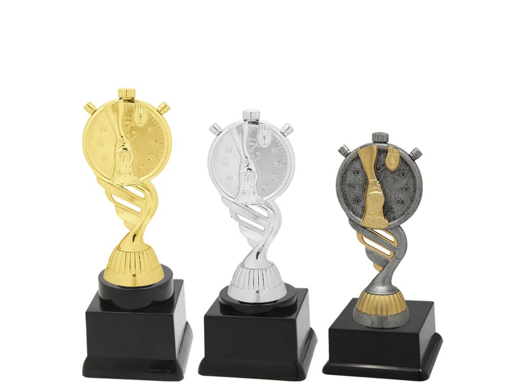 Sportovní pohár - soška s černým plastovým podstavcem. Výška pohárů - sošek: velikost A - 19cm / velikost B - 16,5cm / velikost C - 15,5cm. Materiál: podstavec: plastový, soška sportu: plast.